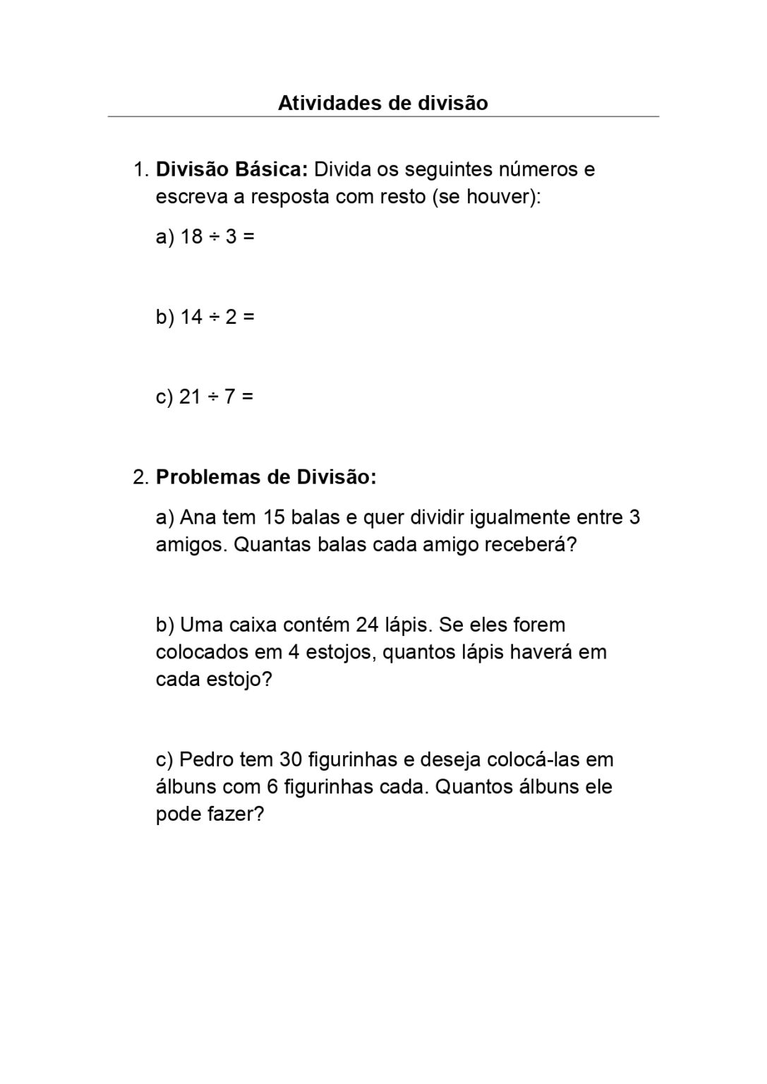 Atividades de divisão 3° ano