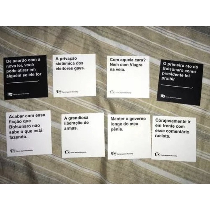 Existe uma versão fanmade brasileira, mas obviamente que. Webcompra cards against humanity, jogos de sociedade,. As últimas novidades em jogos e brinquedos para crianças e adultos na fnac. pt Webo cards against humanity é um jogo de cartas muito interessante , no qual os jogadores tentam se unir dando as respostas mais horríveis e engraçadas a uma pergunta.