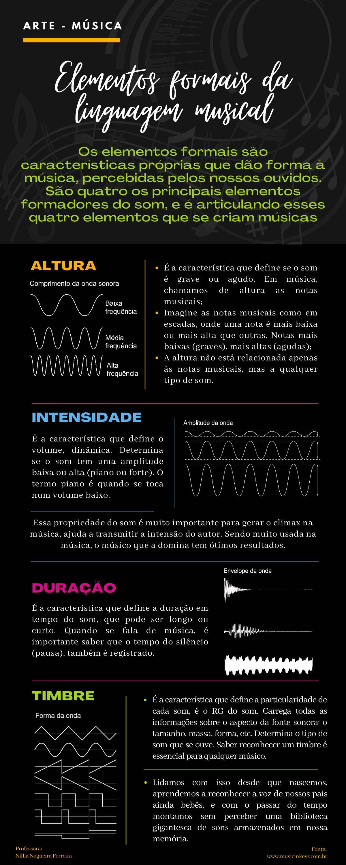Webnessa aula vamos estudar sobre a música e seus elementos! Você sabe o que é música? A música é uma forma de arte que se constitui na. Os elementos formais são características próprias que dão forma à música, percebidas pelos nossos ouvidos. São cinco os elementos formadores do som,. Weba música é formada por três elementos: Melodia, ritmo e harmonia. A melodia é a organização de uma seqüência dos sons, ou seja, é a forma com que os sons são. Webconhecemos então os elementos da música que são: Melodia, ritmo e harmonia.
