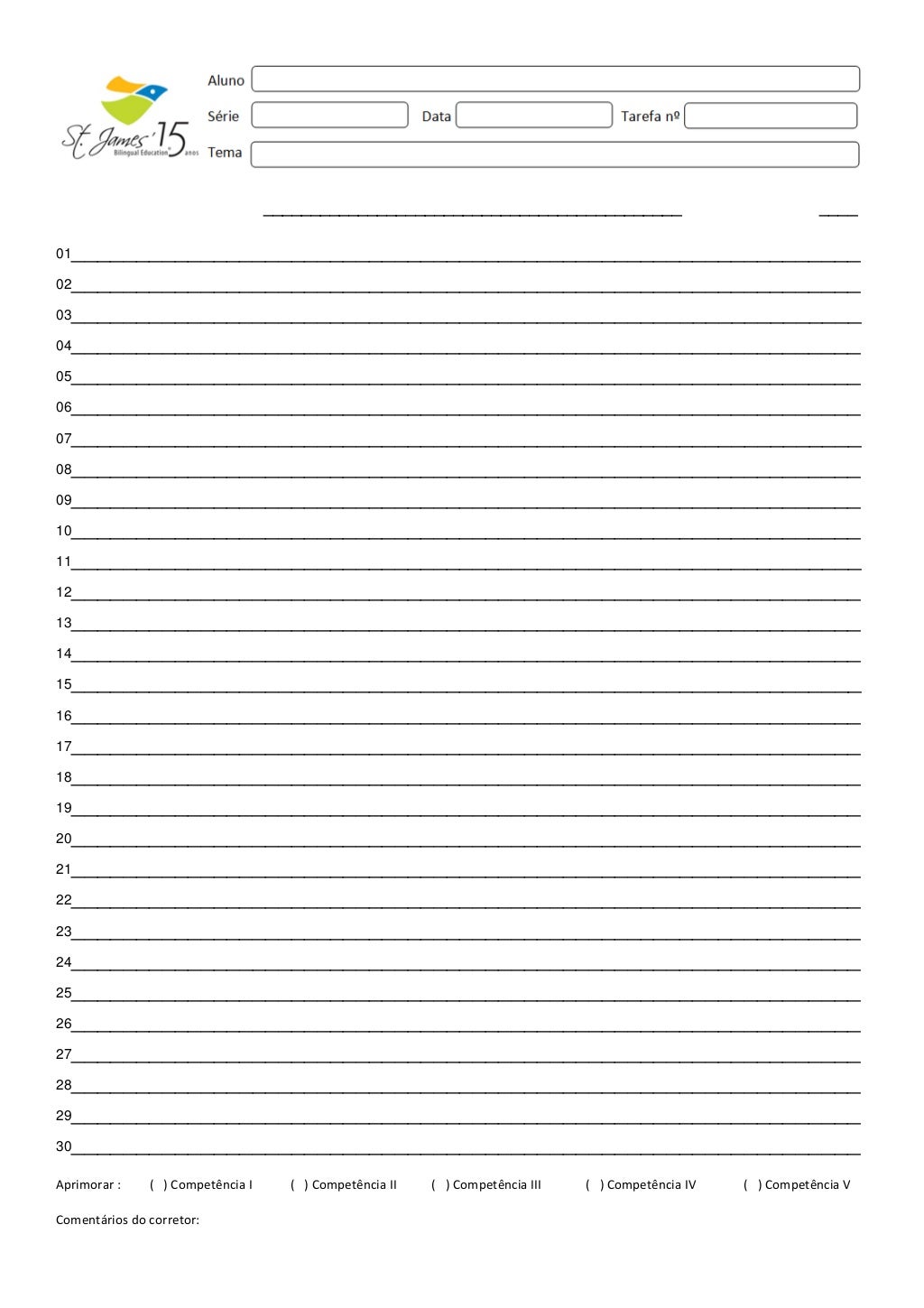 Modelo De Folha Para Redação
